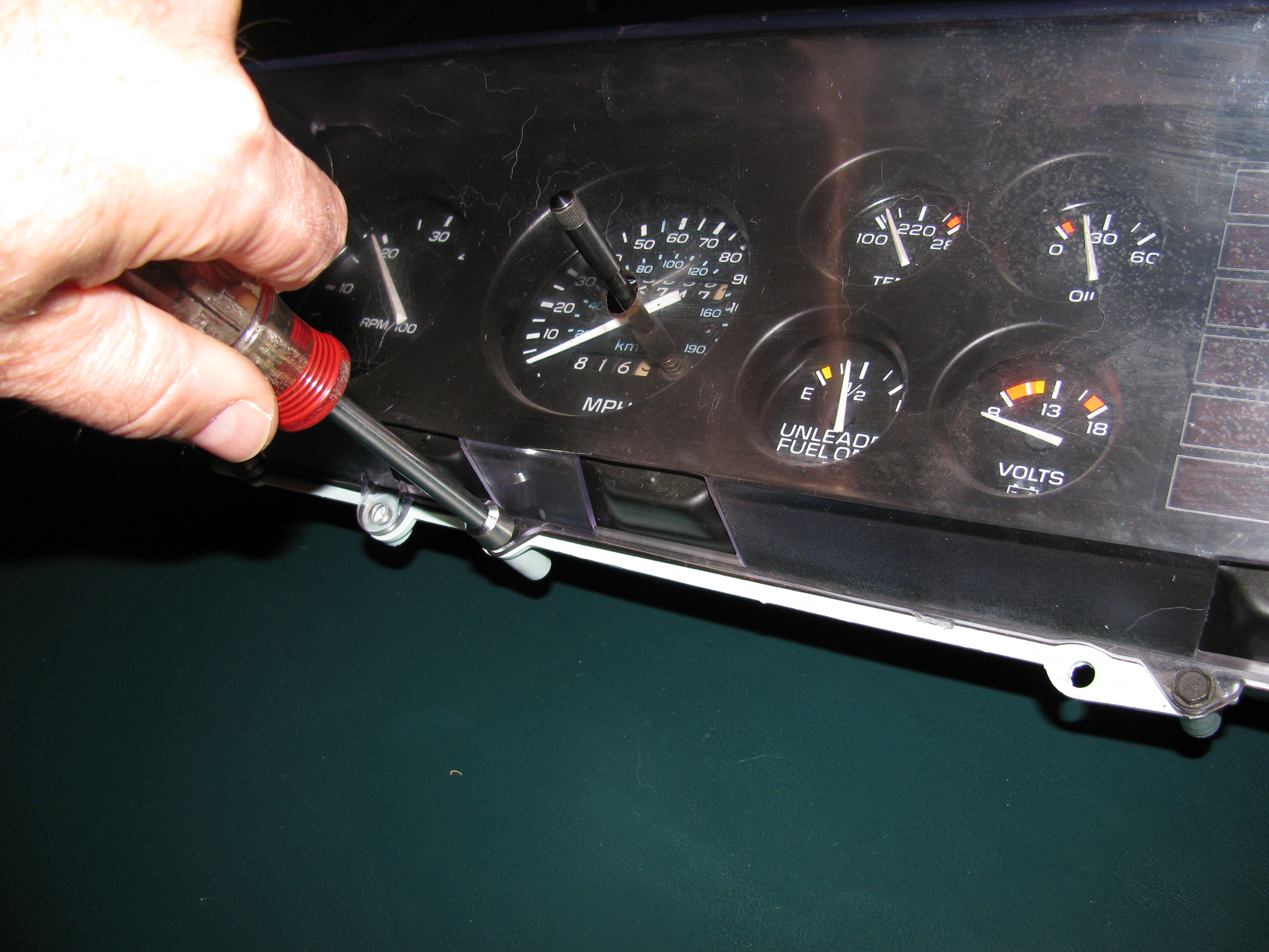 I use a 1/4 nut driver to remove the screws holding the lens and gauge cover to the